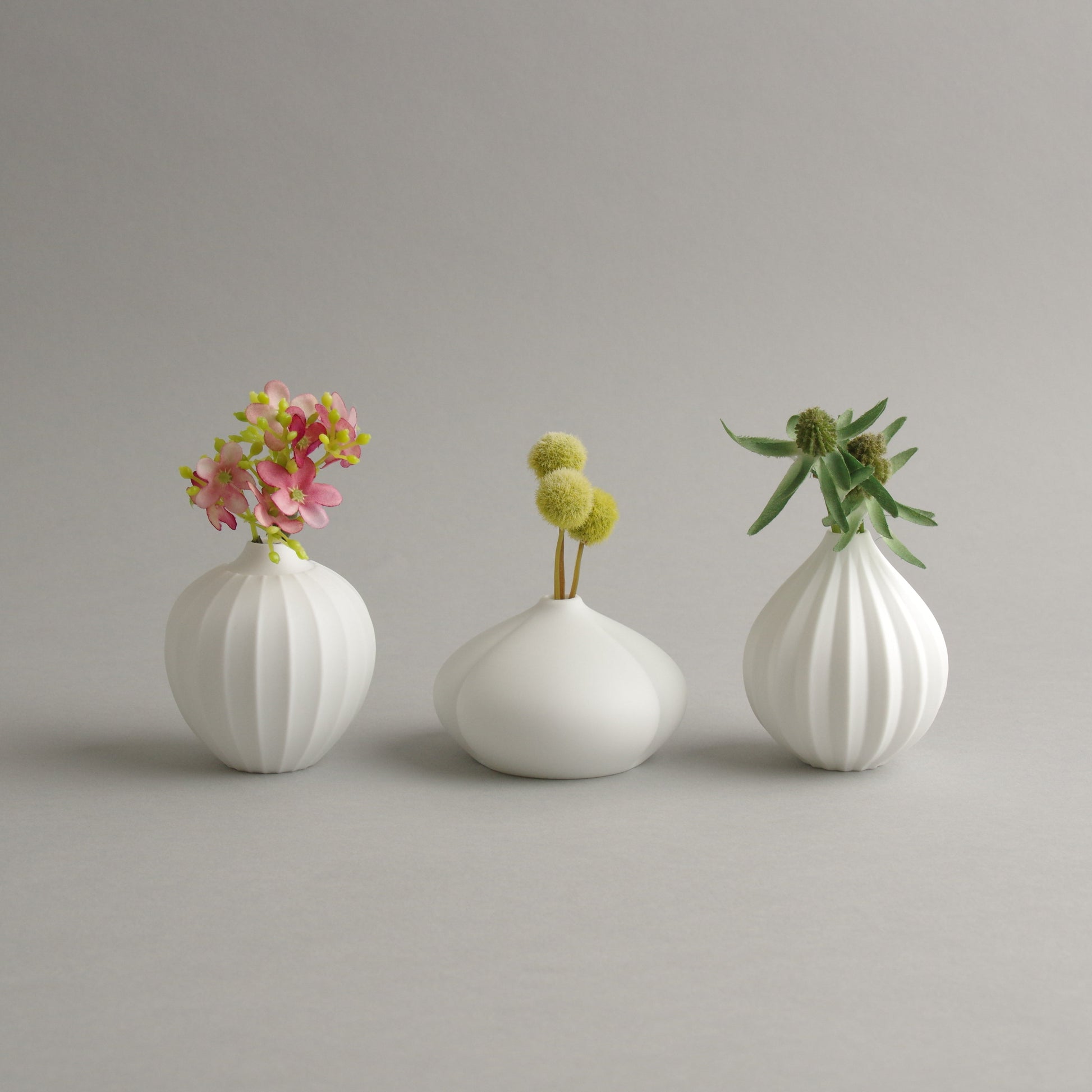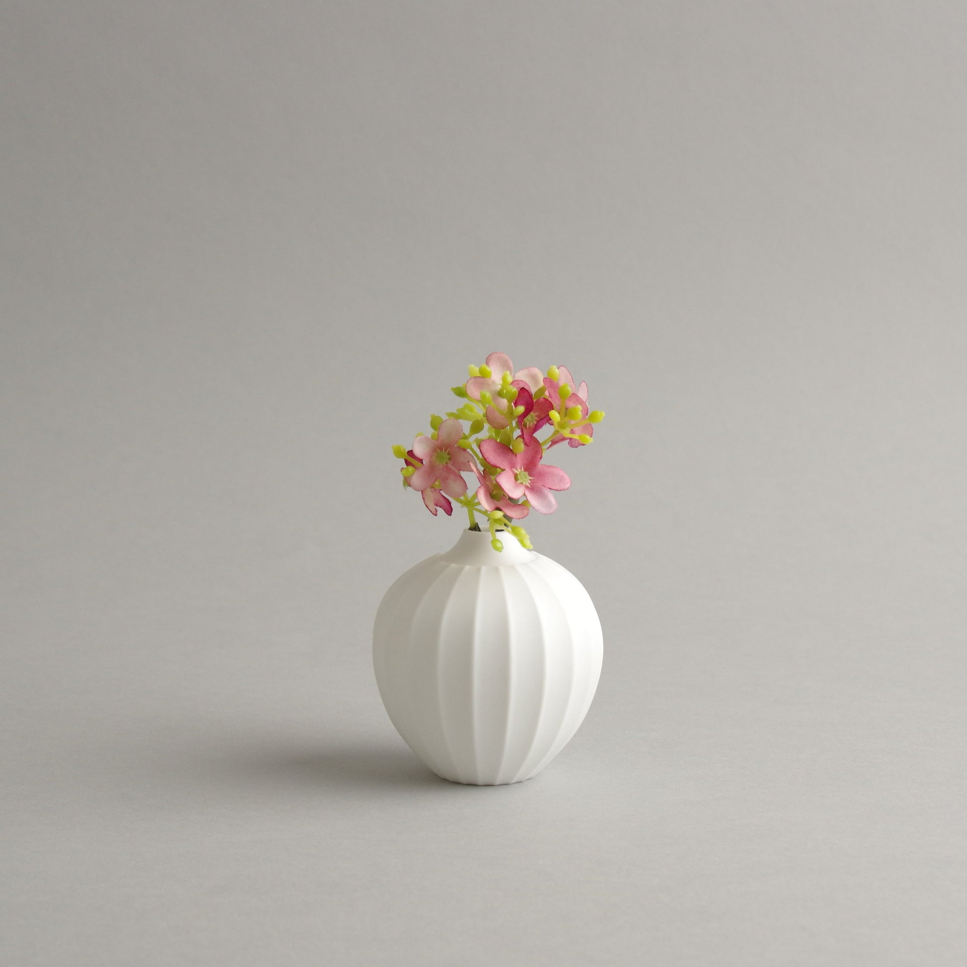 口径:1cm。三方割のみ口径:0.7cm。磁器製で、内側には釉薬がかかっているので、水漏れの心配はございません。エントランス、テーブルに、一花添えるのに最適です。